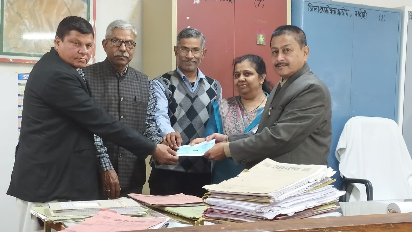 पहले प्रकरण में डाक विभाग द्वारा सेवा में कमी से संबंधित परिवाद पर आयोग ने वादी के पक्ष में निर्णय पारित किया था। अपील प्रक्रिया पूर्ण होने के उपरांत डिग्रीधारक तेज बहादुर सिंह पुत्र स्व. जग बहादुर सिंह, निवासी ग्राम जाठी, पोस्ट रामपुर, तहसील औराई, जनपद संत रविदास नगर (भदोही) को ₹68,394 का चेक प्रदान किया गया। यह चेक आयोग के अध्यक्ष न्यायाधीश संजय कुमार डे एवं महिला सदस्य दीप्ति श्रीवास्तव द्वारा सौंपा गया।