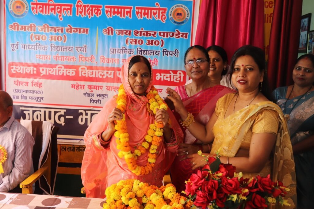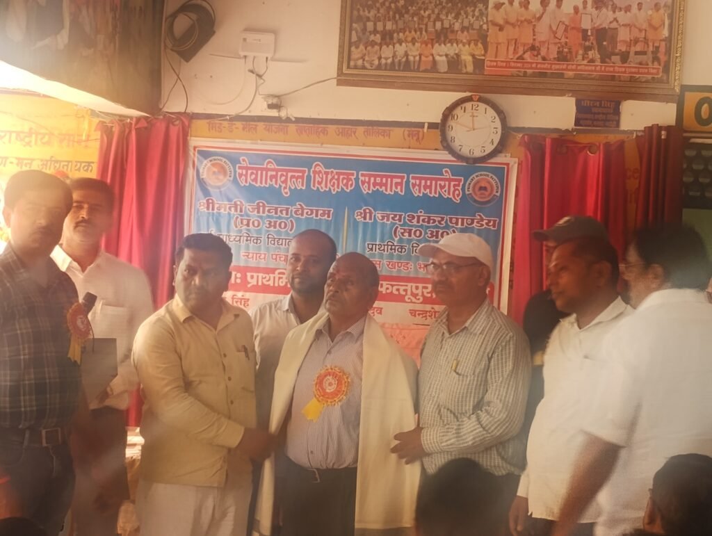भदोही। प्राथमिक विद्यालय फत्तूपुर में शनिवार को सेवानिवृत्त शिक्षकों के सम्मान में एक गरिमामय समारोह का आयोजन किया गया। कार्यक्रम के मुख्य अतिथि खंड शिक्षा अधिकारी श्री चन्द्रशेखर आजाद रहे। मां सरस्वती की प्रतिमा के समक्ष दीप प्रज्वलन कर कार्यक्रम का शुभारंभ किया गया।