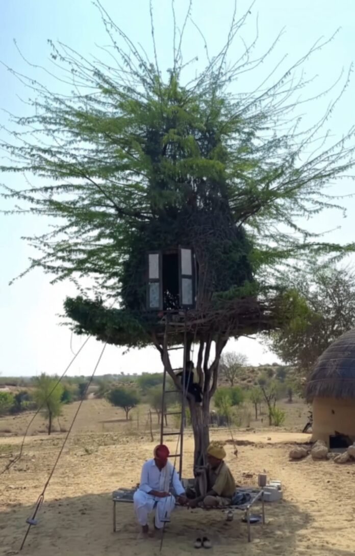 मुंबई (इंद्र यादव) राजस्थान। जब बात जुगाड़ और सादगी की आती है, तो मारवाड़ की धरती का कोई सानी नहीं है। हाल ही में वायरल हुए एक वीडियो में राजस्थान के एक सुदूर गांव में एक देसी बबूल के पेड़ पर बना बेहद खूबसूरत और कलात्मक घर (Tree House) नजर आ रहा है। यह घर न केवल वास्तुकला का अद्भुत उदाहरण है, बल्कि हमारी पुरानी ग्रामीण यादों को भी ताजा करता है।