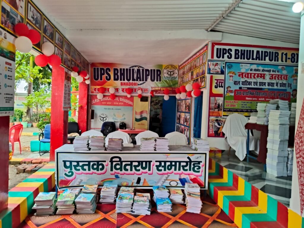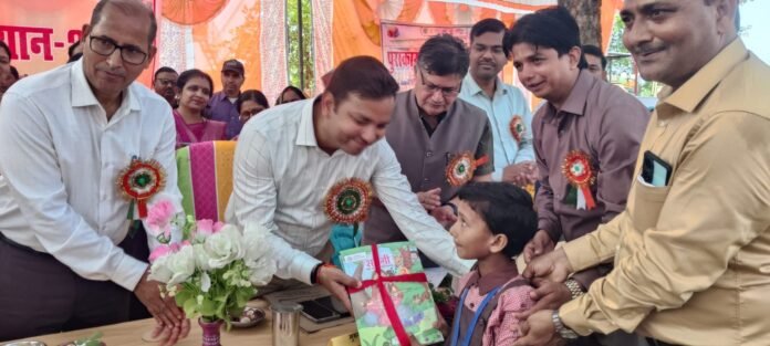 भदोही उत्तर प्रदेश में प्रवेश उत्सव व मेधावी छात्रों का सम्मान, डीएम ने किया नेतृत्व