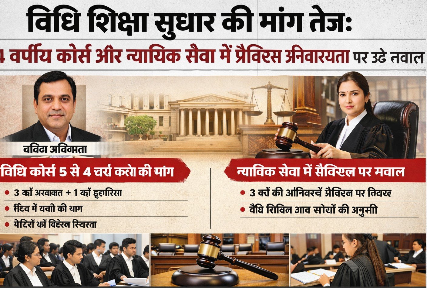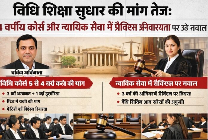 विधि शिक्षा सुधार की मांग तेज: 4 वर्षीय कोर्स और न्यायिक सेवा में प्रैक्टिस अनिवार्यता पर उठे सवाल