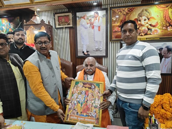 भदोही।भदोही नगर आज हिंदू चेतना, एकता और संगठन के विराट संदेश का साक्षी बना, जब भारत टॉकीज चौराहा स्थित पूर्व नगर पालिका परिषद अध्यक्ष श्री अशोक जायसवाल के कार्यालय पर अंतरराष्ट्रीय हिंदू परिषद के राष्ट्रीय अध्यक्ष डॉ. प्रवीण तोगड़िया का भव्य आगमन हुआ।